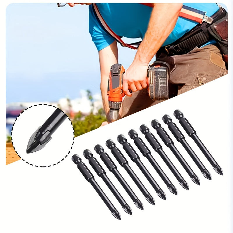 10 részes T-fűrész, hatszögű szárú fúrószár, nagy sebességű acél, többcélú csempe, üveg, tükör, kerámia, kemény ötvözet fúrószár készlet.