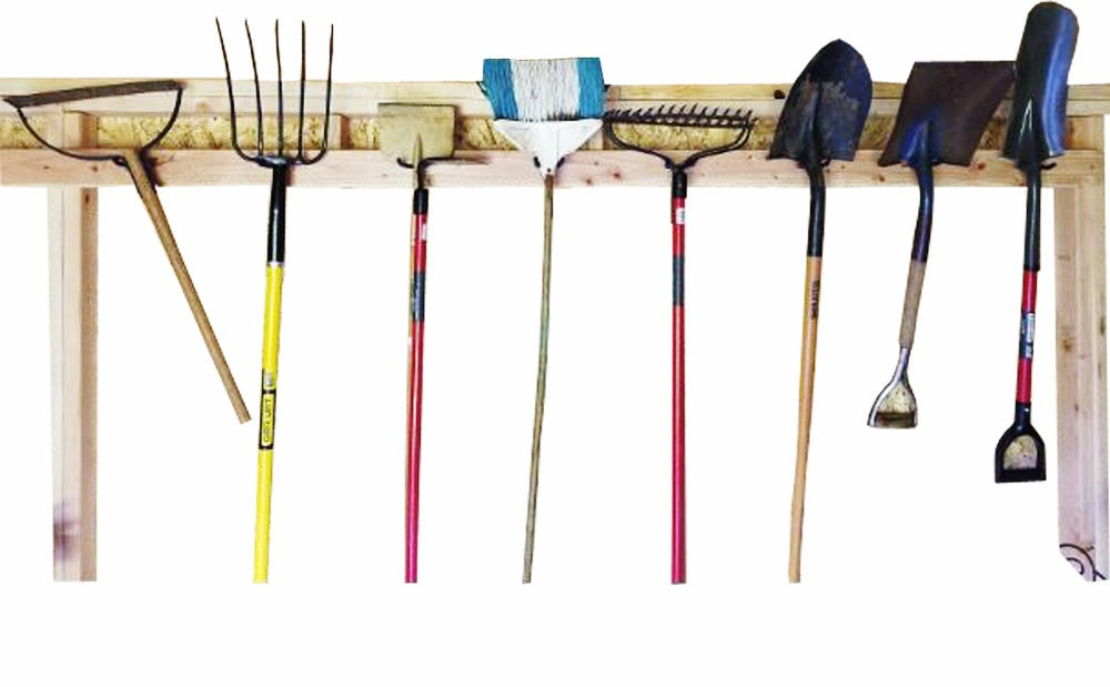 Ideális gereblyék, ásók, seprűk és egyéb eszközök felakasztására.