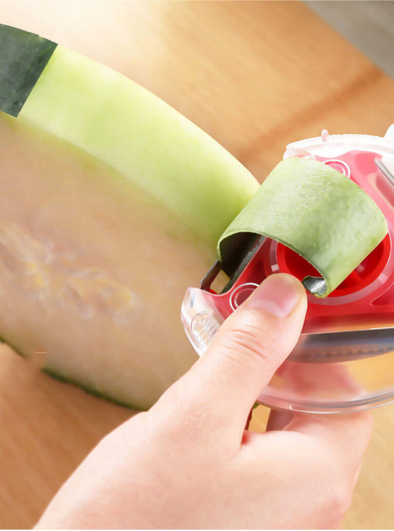 A 3 az 1 -ben konyhai hámozó minőségi, univerzális konyhai eszköz. Rozsdamentes acél pengéivel könnyen meghámozhatod a gyümölcsöket és zöldségeket. 3 pengéje van: általános (kemény zöldségekhez), fogazott (gyümölcsökhöz) és julienne (cukkinihez, répához). Zárrendszere biztonságosan rögzíti a pengét. Továbbá tartása is kényelmes az ergonomikus kialakításának köszönhetően (a hüvelykujjaddal jobb és bal kézzel is kényelmesen tudod tartani a neki kialakított helynek köszönhetően). A romlott részeket egy kiálló lyukasztóval ki is tudsz vájni.