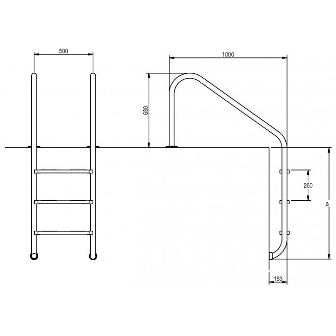 A létra hossza 946 mm, és ajánlott medence mélység 120 cm. A létra csőátmérője 43 mm, és a két ív közötti távolság 50 cm. Az alapanyaga AISI304 polírozott acél, amely garantálja a tartósságot és a hosszú élettartamot.