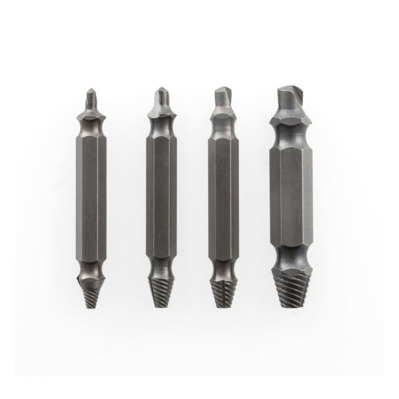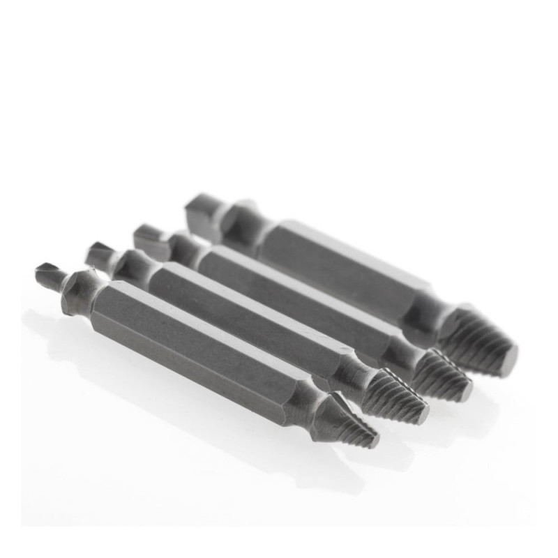 A szettben 4 különböző méretű csavarkiszedő található, melyek segítenek kiszedni a beszorult csavarokat. Egyszerűen helyezd a fúróba a fejet és már kint is van a csavar.