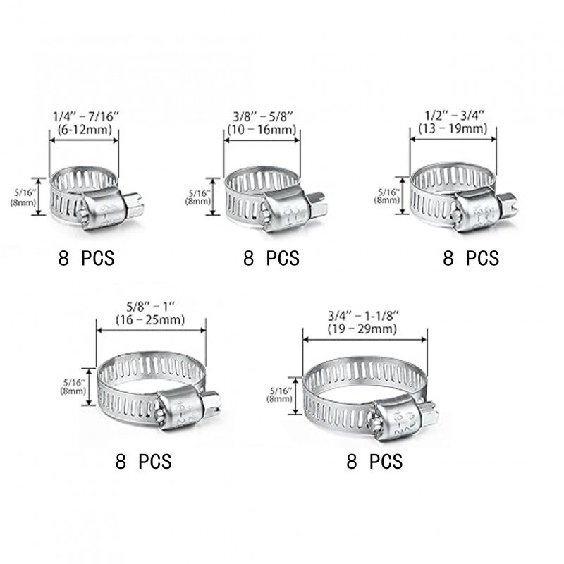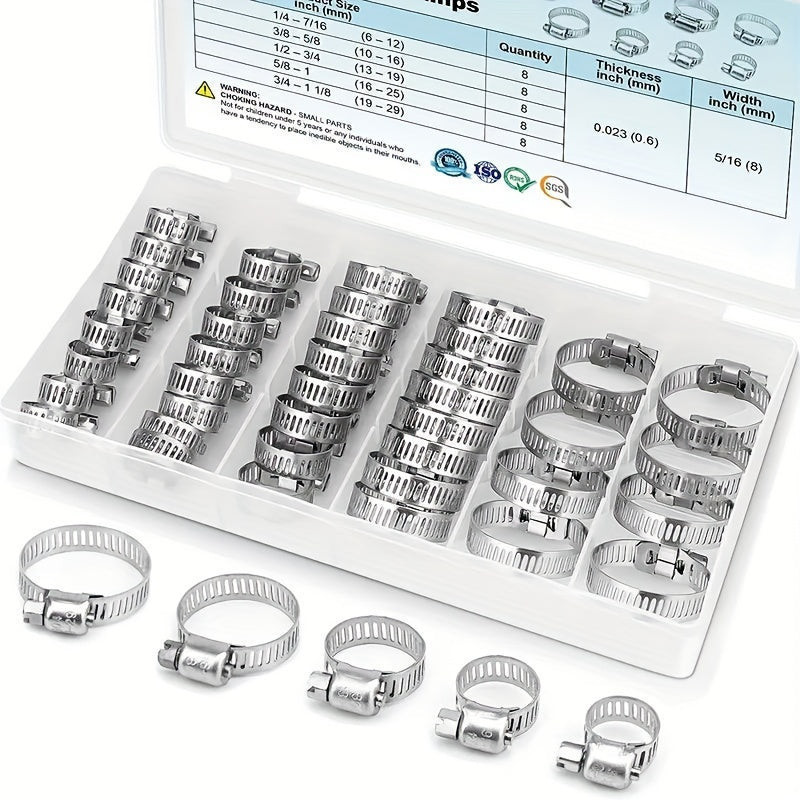 Tulajdonságok: - 40 db tömlőbilincs a csomagban - 2,54/10,16 cm és 2,54-2,54/20,32 cm méretekhez - Rozsdamentes acélból készült - Csavaros rögzítés - Rugalmas kialakítás