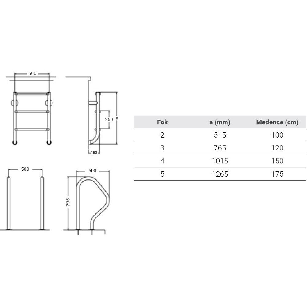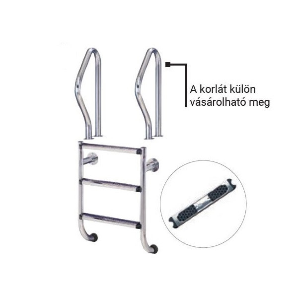Fontos megjegyezni, hogy a létra korlátja külön vásárolható meg, és ajánlott monolit, vízzáró beton medencékhez használni.