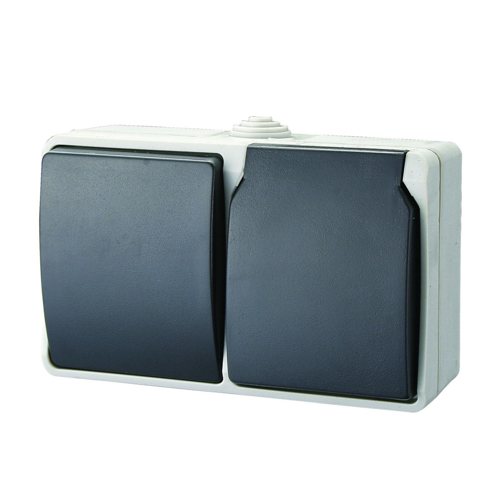 AQUATOP 9873H falon kívüli váltókapcsoló és dugalj, 1 billenő, 1 aljzat, vízszintes, 10 A/16 A, IP54, szürke