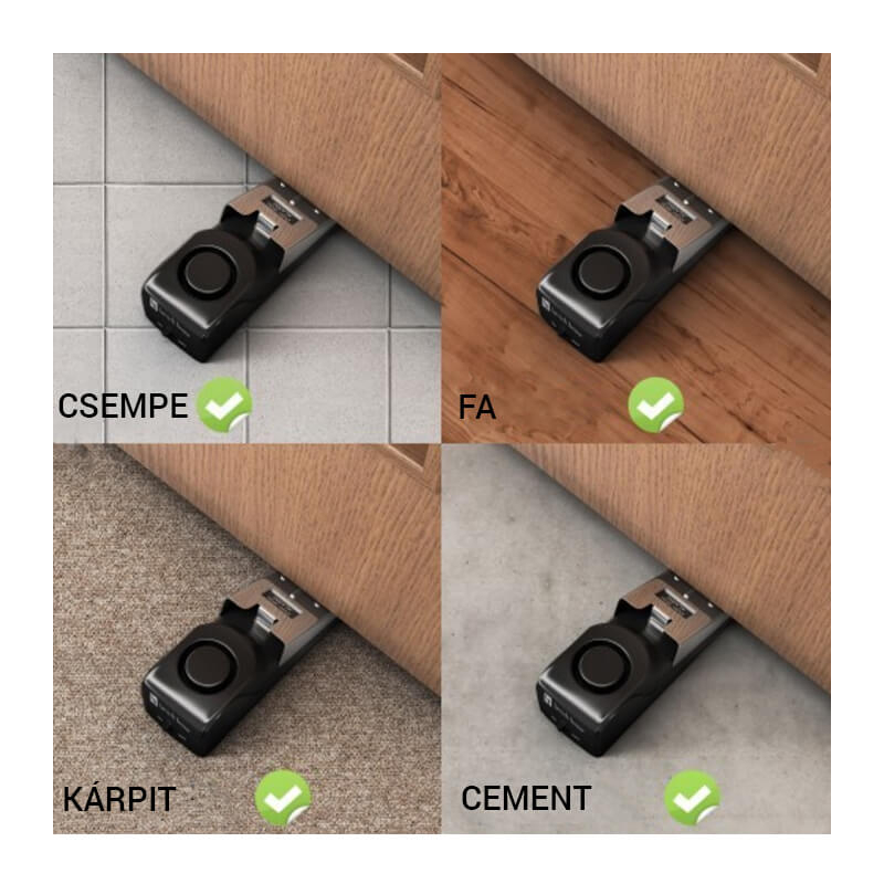Segít visszariasztani a betolakodókat figyelmeztető hangjelzésével. Kulcsra zárt ajtódat dupla védelemmel láthatod el. Ék alakjának és csúszásgátló felületének hála megnehezíti a bejutást.