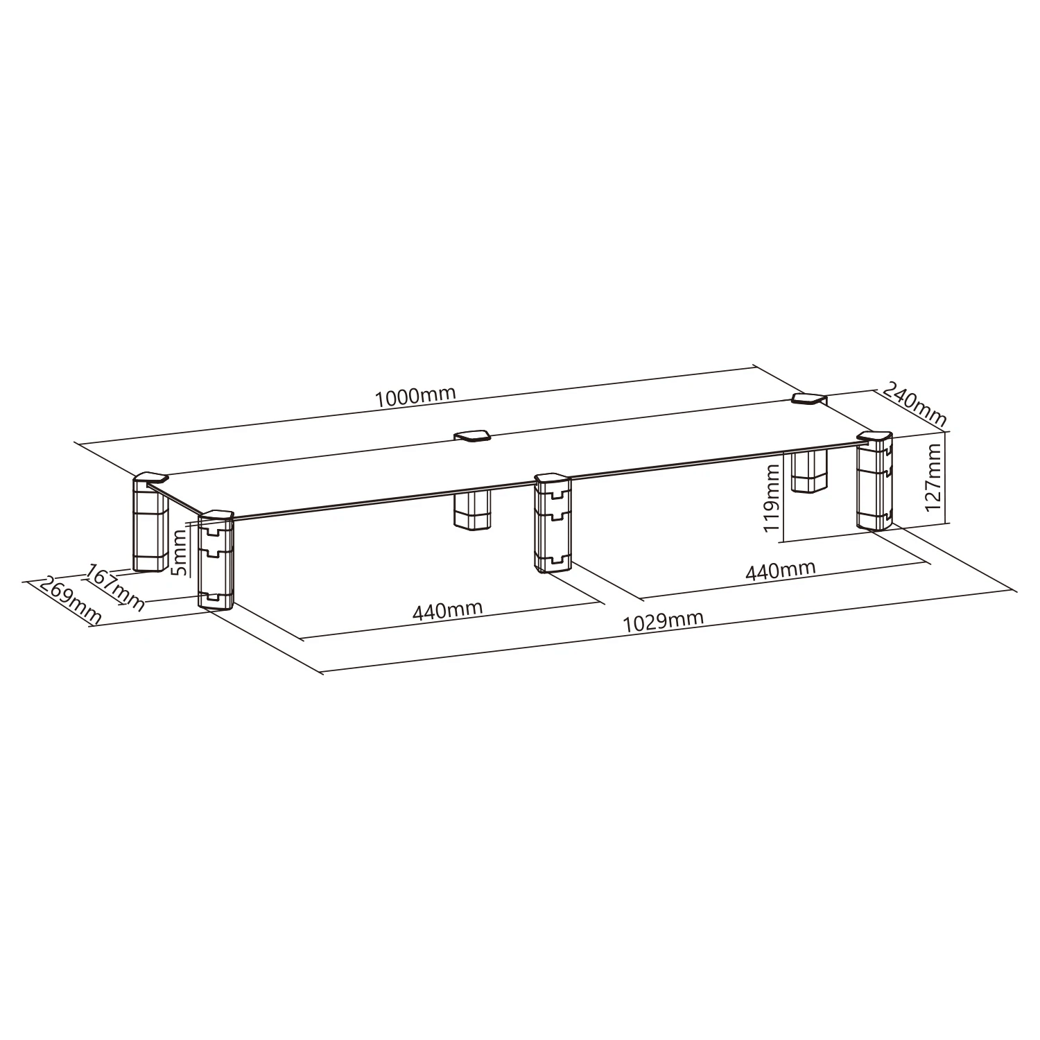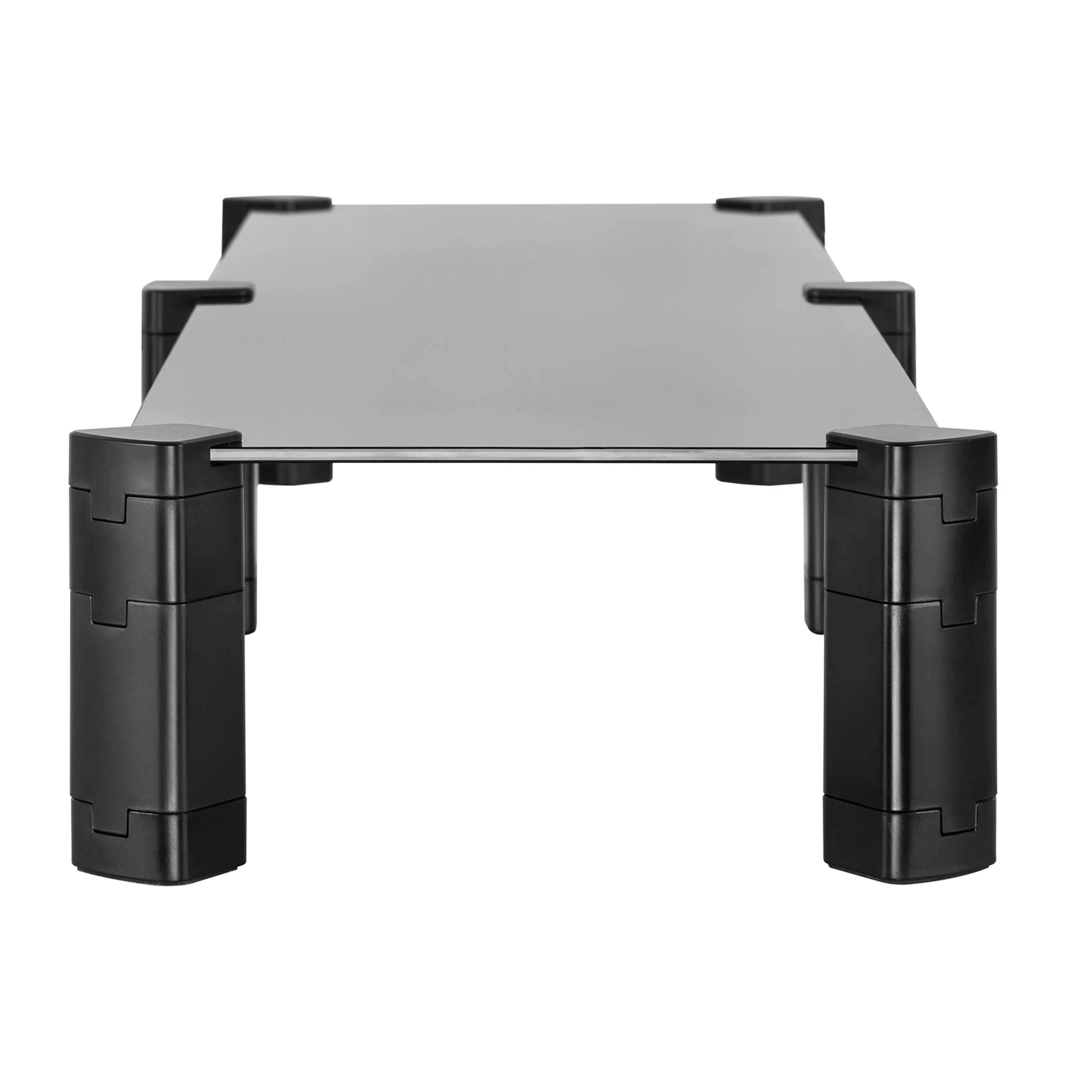 Ennek a kisasztalnak köszönhetően a monitorjaidat magasabbra emelheted, amellyel nem csak a látószögeden tudsz javítani, de még helyet is takarítasz meg. Helyezd dokumentumaid, vagy akár a gép kiegészítőit az asztal alá. A monitortartót 4 különböző magasságba tudod állítani, így megtalálod a neked megfelelőt. Anyaga edzett üveg, amely nem csak strapabíróvá, de könnyen tisztíthatóvá is teszi azt.