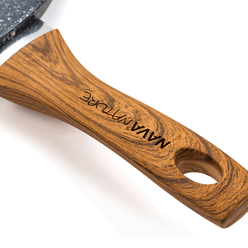 5 rétegű, tapadásmentes kőbevonatának köszönhetően a benne készülő étel nem csak nem tapad le, hanem kiemeli saját ízét is. Bevonata hosszú élettartamot és karcolásellenállást biztosít. Fából készült, ergonomikusan kialakított fogantyúja nem veszi át a hőt, így akár több órán keresztül való főzés után is biztonságosan megfogható. Található még rajta egy lyuk is, amellyel fel is akaszthatod használat után.