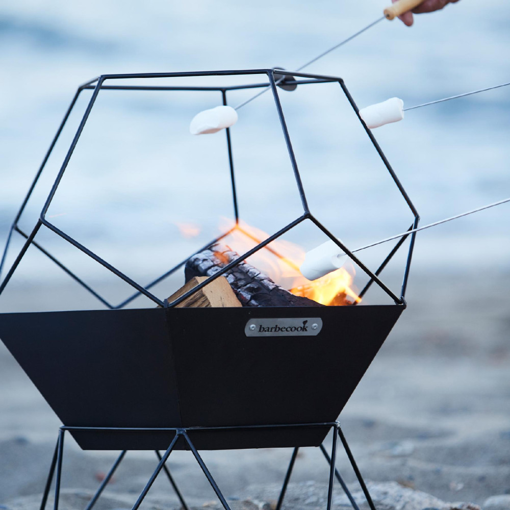 Képzelje el, ahogy barátaival beszélget, mályvacukrot vagy szalonnát süt a tűz felett, vagy csak élvezi egy jó könyv olvasását a lángok melegében. A Jura tűzkosár télen-nyáron tökéletes választás a szabadtéri összejövetelekhez. Stílusos geometrikus design és fekete lakkozott acél kivitel, amely bármely kültéri tér látványos dísze lehet. A 42,5cm átmérőjű és 70cm magasságú tűzkosár öt lába garantálja a stabilitást a kertben vagy a teraszon. Nyitott kialakításának köszönhetően teljes mértékben élvezheti a táncoló lángok látványát és melegét. A Jura tűzkosár választása funkcionális megoldást és egyben gyönyörű kerti díszt is jelent.