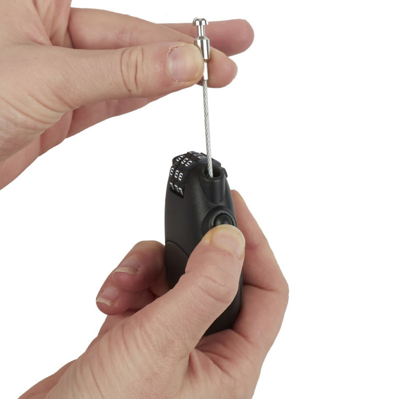 Hogy miben más ez a termék, mint egy egyszerű lakat? Legfeljebb fél méter teljes hosszúságú biztonsági kábellel rendelkezik, mely többfunkciós, változatos felhasználást tesz lehetővé. Nem kell tartanod attól, hogy elhagyod a kulcsot. Csak az általad beállított 3 jegyű számsorra kell emlékezned. 1000 lehetséges számkombináció közül választhatsz, ennek köszönhetően nagyon biztonságos.A termék tulajdonságai:Színe: feketeAnyagok: Műanyag - ABSTermék mérete: 7 x 5.8 x 1 cmKábel hossza: 0,5 m