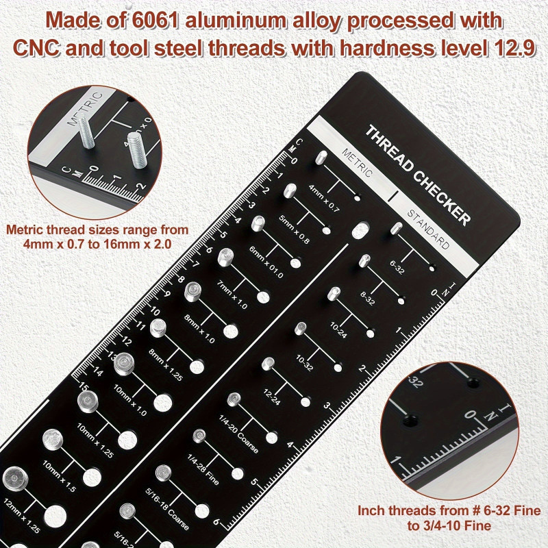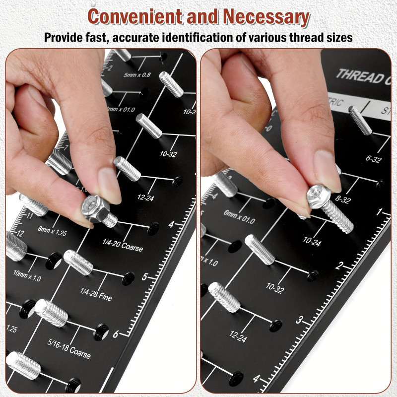 Univerzális Méret : Az eszköz különböző méretű menetek ellenőrzésére alkalmas, így bármilyen csavar esetén használható. Egyszerű, de hatékony!