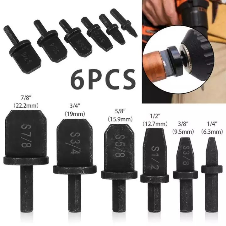 A termék jellemzői: Anyaga: acél Szín: fekete Méret: 22,2 mm, 19 mm, 15,9 mm, 12,7 mm, 9,5 mm, 6,3 mm Mit rejt a termék doboza? 1 db Csőbővítő készlet 6 db tágítófej