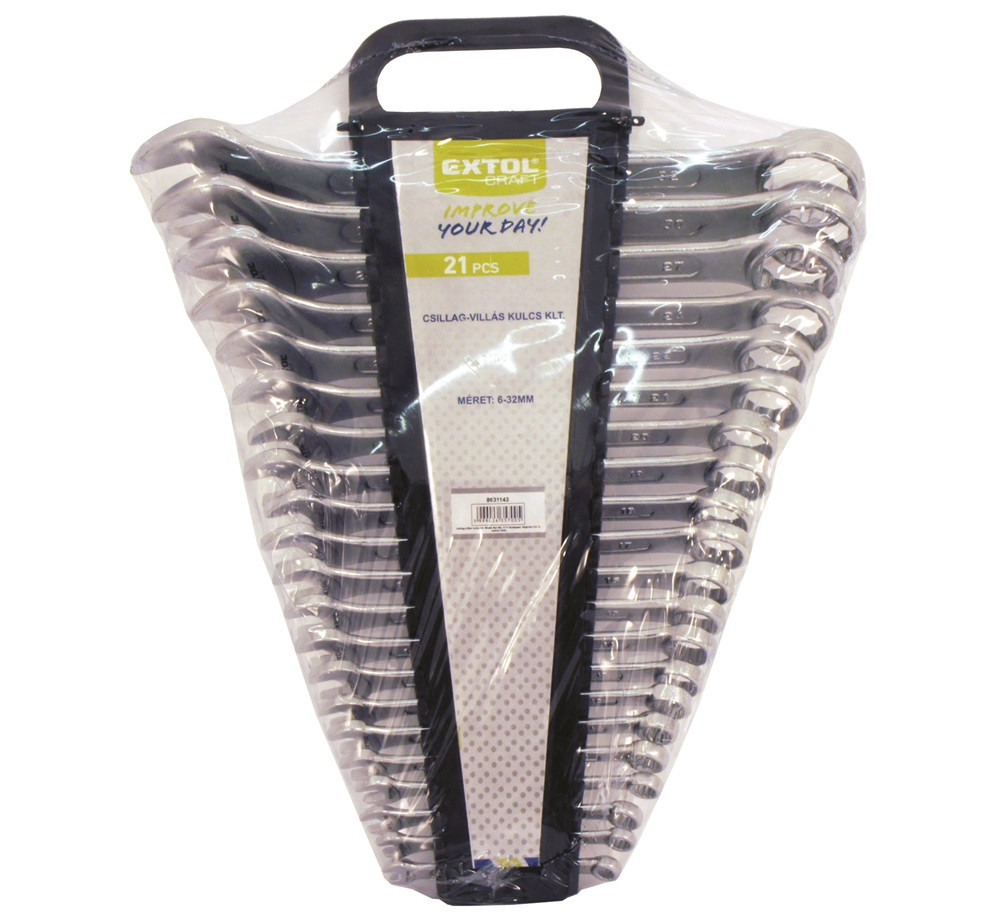 EXTOL CRAFT csillag-villás kulcs klt., CrV., műanyag tartóban ; 21db, 6-32mm