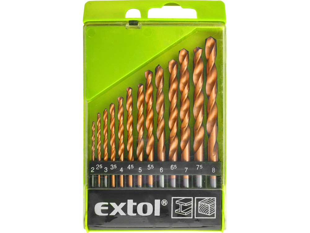 EXTOL CRAFT fémcsigafúró klt. HSS TITÁN bevonatú; 13db, 2-8mm, (műanyag dobozban)