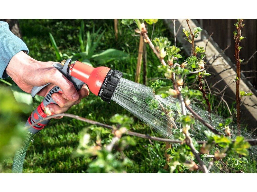 EXTOL CRAFT pisztoly szórófej, locsoló, festett réz fejjel, 7 féle sugár, kuplung csatlakozóval, ergonomikus GARDEN