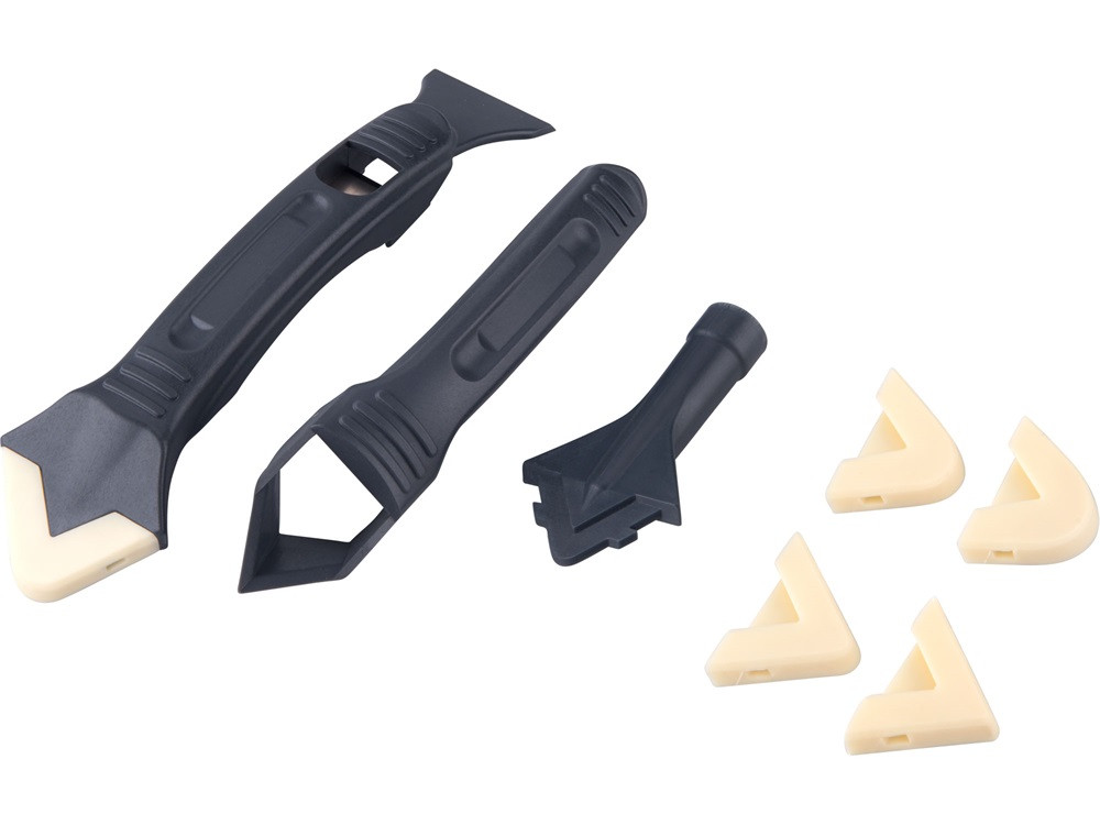 3 db ABS műanyag szerszám: fugalehúzó- és kaparó, fuga eltávolító, kenőfej+ 5 db szilikon lehúzóprofil R=3-6-10-13-17 mm