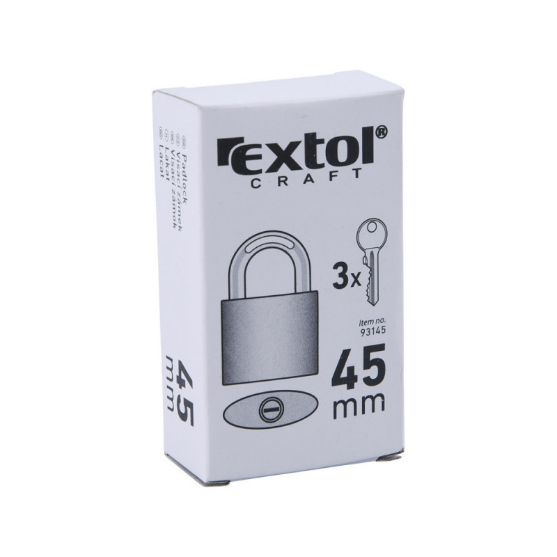 Kiváló minőségű öntöttvasból készült zártest, belső cinkbevonattal a korrózióállóság növelése érdekében. Sárgaréz hengerbetét, kiváló minőségű edzett acélból készült kengyel. Kulcs használata nélkül, kattintással zárható. 3 db kulcs, papír doboz.