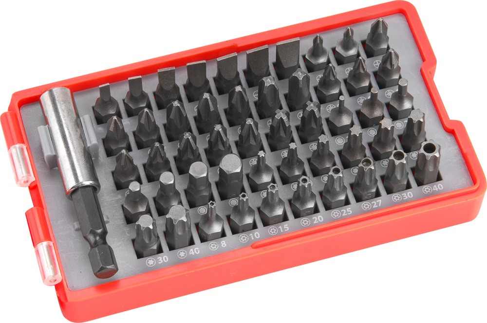 EXTOL PREMIUM behajtó klt. 51 db Cr.V., lapos:3-7mm, PH0-3, PZ0-3, HEX 1,5-6mm, T és TTa 8-40, övre akasztható műanyag tartóban