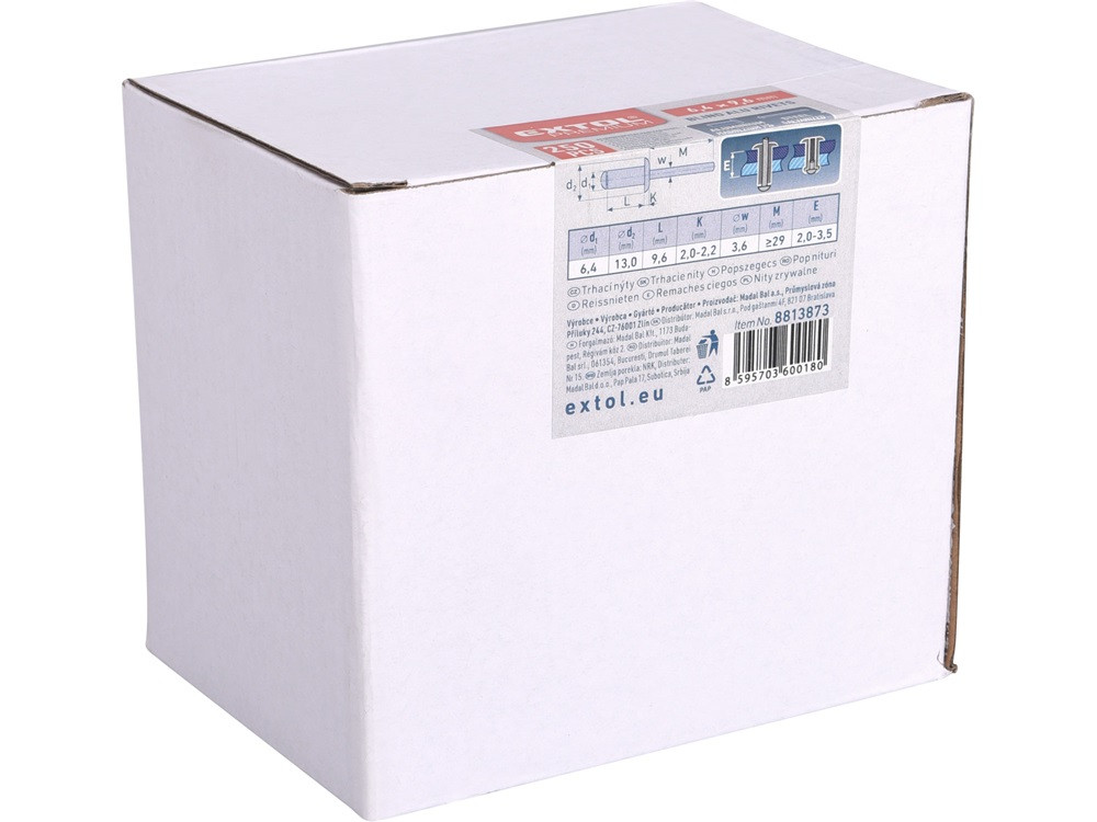 EXTOL PREMIUM popszegecs klt. alu, 250 db, méret: 6,4×8 mm