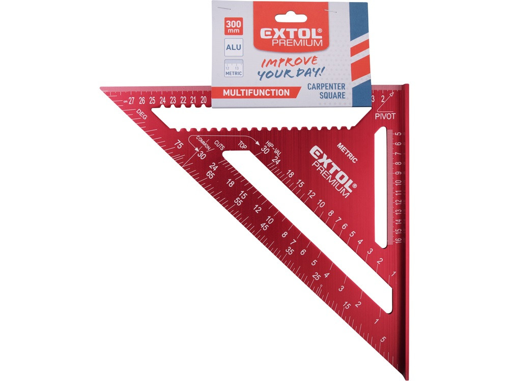 EXTOL PREMIUM asztalos derékszög, 300 mm, ALU, lézer gravírozott, mm beosztás, 0-90° ferde beosztás