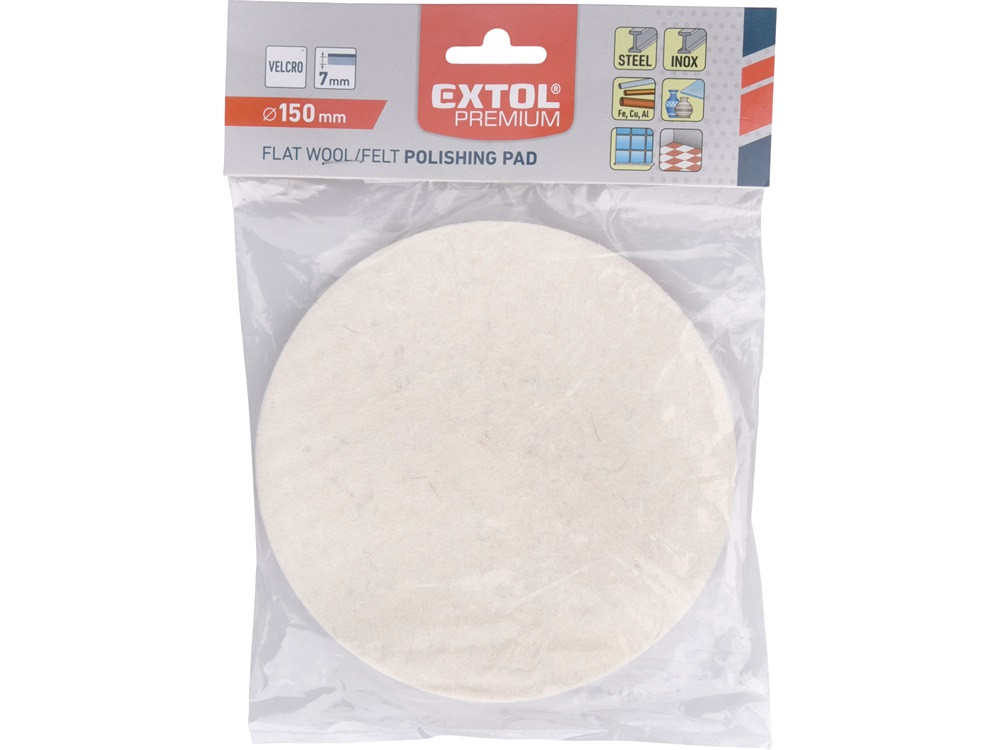 EXTOL PREMIUM polírkorong, fehér, báránybőr (gyapjú); 150 mm, 7 mm vastag, tépőzáras