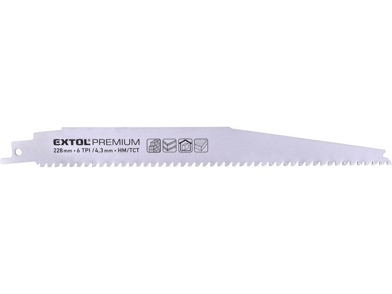 EXTOL PREMIUM szablyafűrészlap 1db, Bosch befogás, HM/TCT fogak, 228 mm, 6T, gázbetonhoz, tiszta, íves vágás