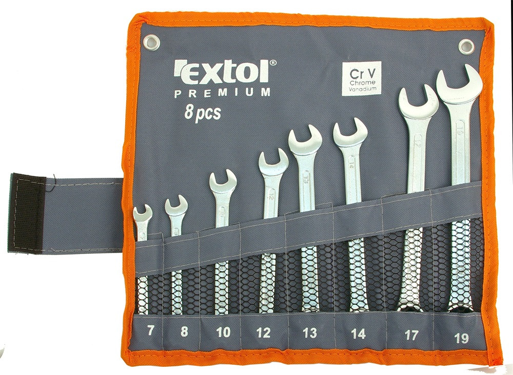 EXTOL PREMIUM csillag-villás kulcs klt., CrV., vászon tartóban; 8db, 7-19mm