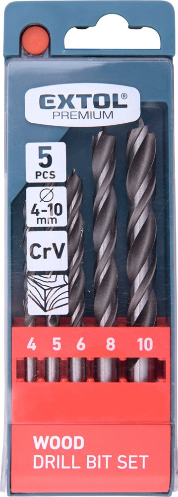 EXTOL PREMIUM fafúró klt. 5 db, rövid, 4-5-6--8-10mm, Cr.V., normál befogás; műanyag dobozban