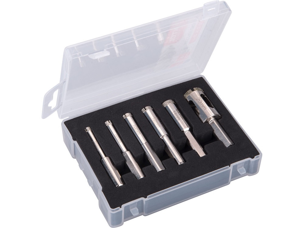 EXTOL PREMIUM körkivágó klt. 6 db, üvegre, kerámiára és csempére, gyémánt vágóél; 6-20 mm, fúrógépbe fogható