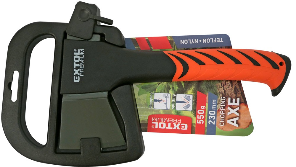 Külünleges alakú, többfunkciós kialakítású, teflon bevonatú fej: fejsze-, hasító ék- és kalapács módjára is használható.