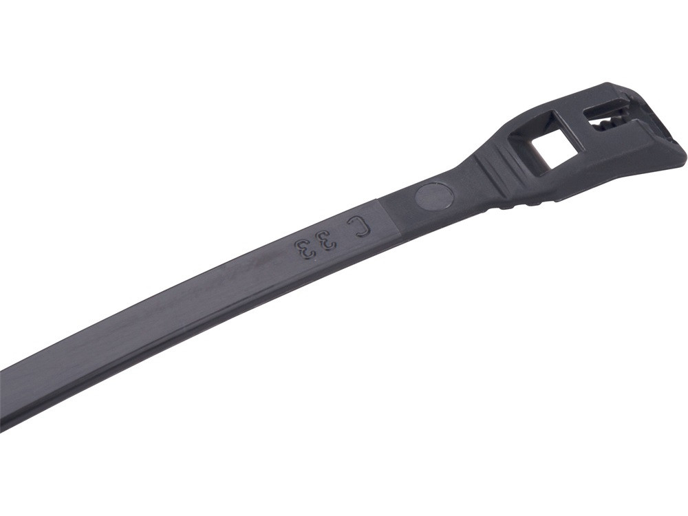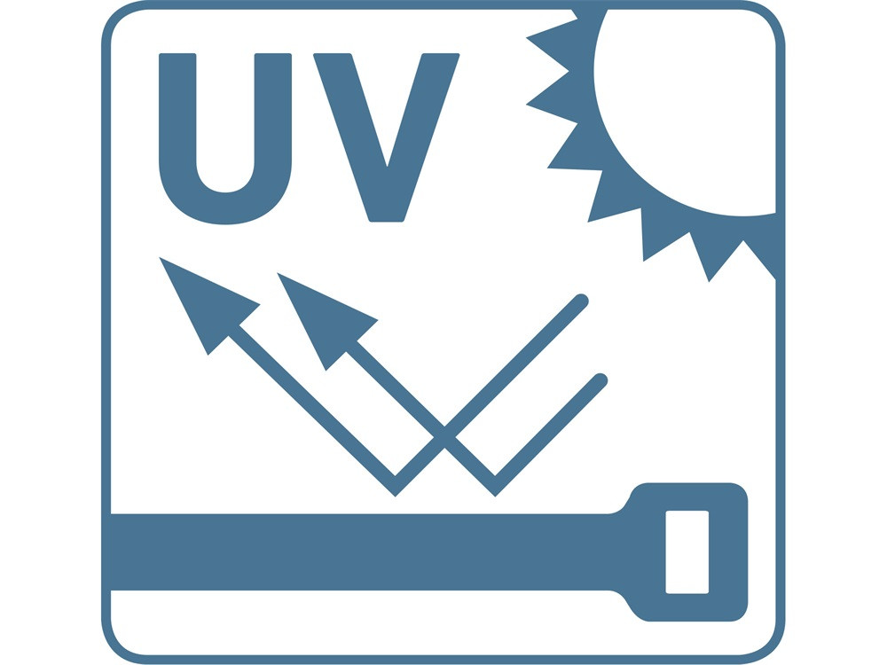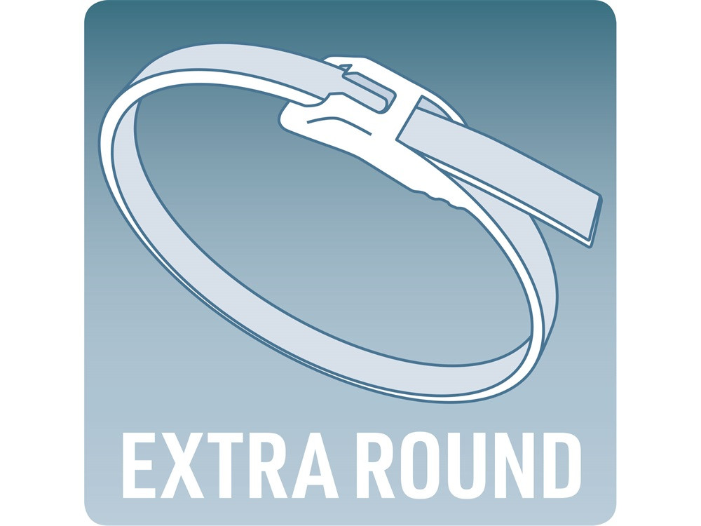 EXTRA: a kábelkötegelő fokozottan ellenáll az UV sugárzásnak továbbá a zárófej kialakításának és formájának köszönhetően a szalag szinte pontos kört alkot a hurokban, és a szalag nem szakad el olyan könnyen a zárófejnél a meghúzás után; a szalag így ellenállóbb a zord környezetben (különösen fagyos időben), mint a hagyományos kialakítású/ típusú zárófejjel ellátott szalagok.