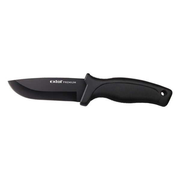EXTOL PREMIUM vadász- és túrakés, 2CR13 rozsdamentes acél penge, műanyag nyél, nylon tok, teljes/penge hossz: 230mm/110mm