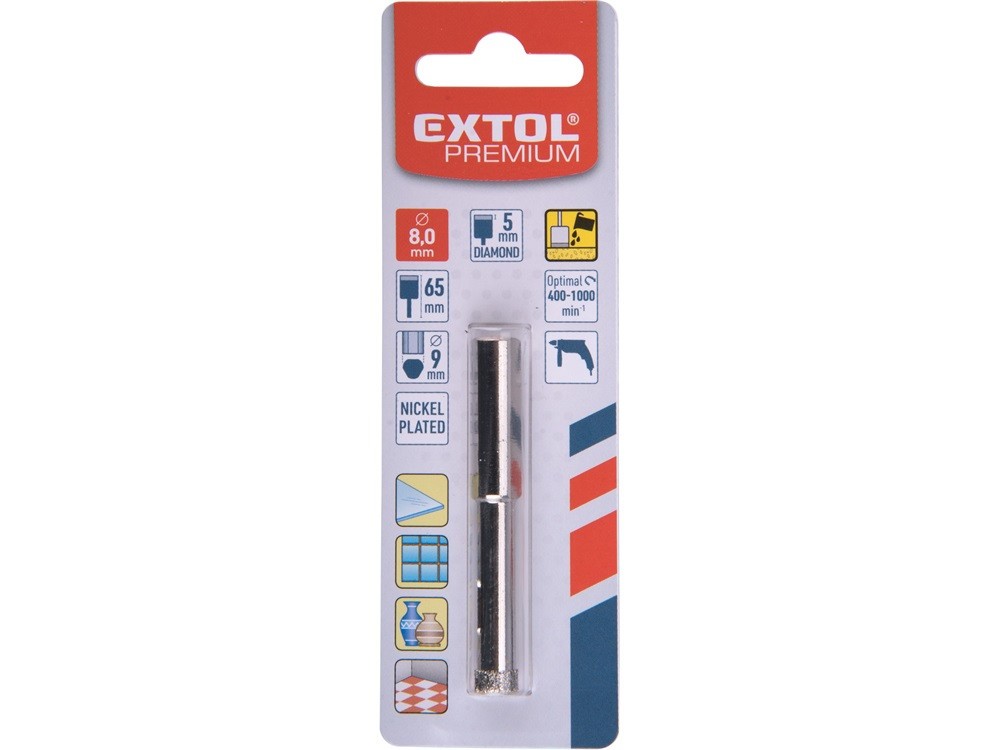 EXTOL PREMIUM körkivágó üvegre, kerámiára és csempére, gyémánt vágóél; 8×65mm, fúrógépbe fogható