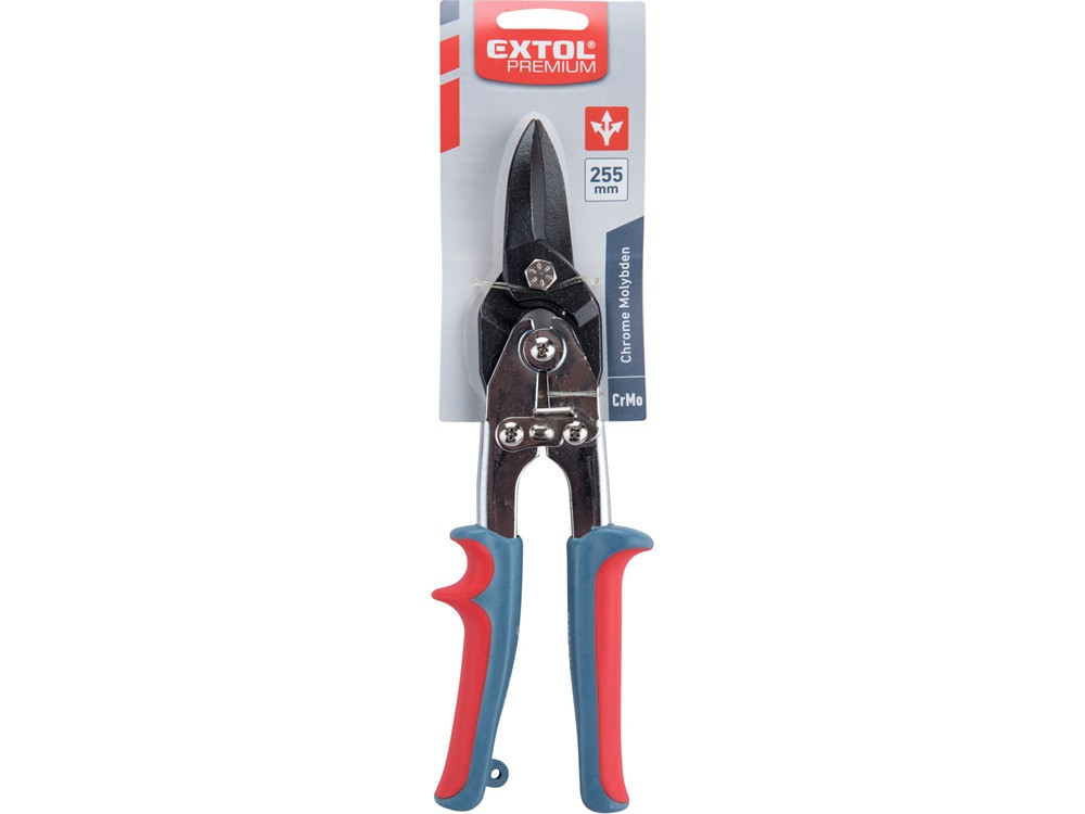 EXTOL PREMIUM lemezvágó olló, egyenes- és íves vágáshoz, 255mm, CV., áttételes, kétszínű, múanyag nyél
