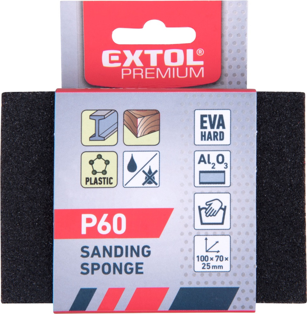 EXTOL PREMIUM kézi csiszolóblokk, (stekli, csiszolószivacs) 100×70×25mm, P60, kemény, EVA