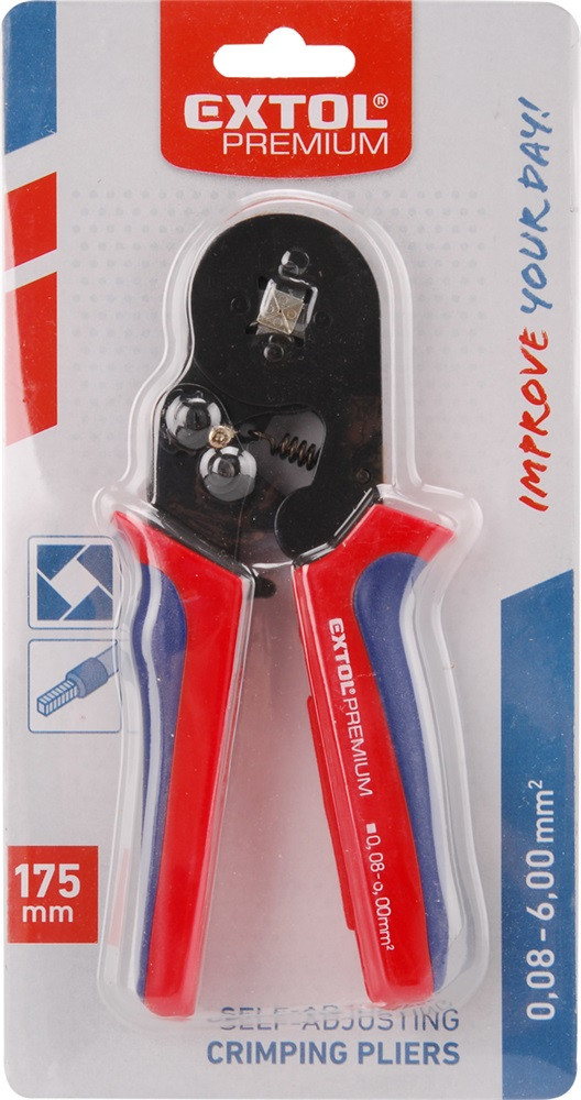 EXTOL PREMIUM érvéghüvely fogó (prés), 0,08-6mm2, 175mm, bliszteren