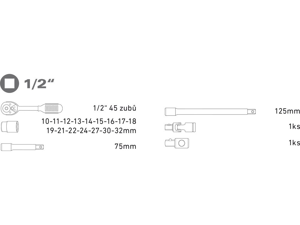 EXTOL PREMIUM dugókulcs klt., CV., racsnis 45fog ; 1/2' 21db, 10-32mm
