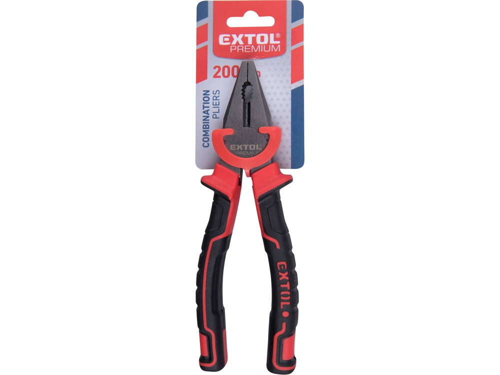 EXTOL PREMIUM kombinált fogó, 200mm, duál vörös/fekete, TPR nyél, akasztós szerszámtartó