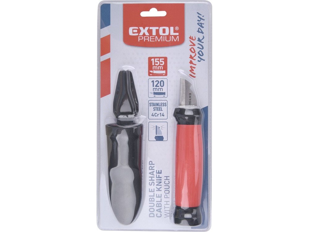 EXTOL PREMIUM kábelvágó / blankoló kés, 4Cr14 acél, penge hossz: 35 mm, teljes hossz: 155 mm