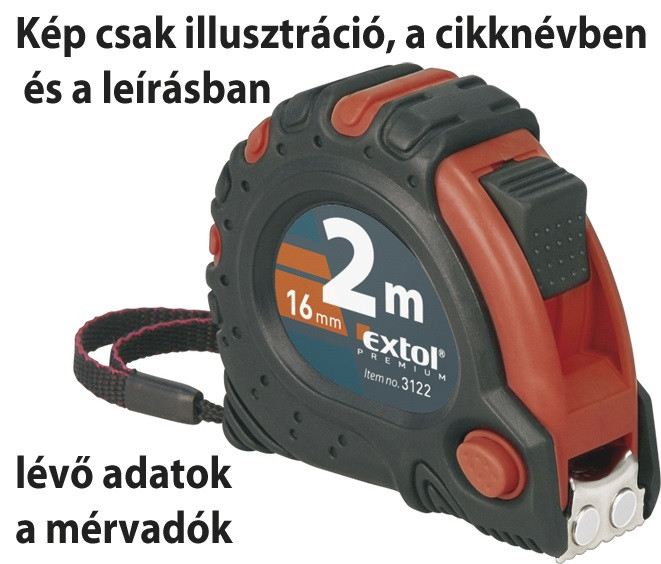 EXTOL PREMIUM mérőszalag, gumírozott, mágneses 3 stoppos; 3m×19mm