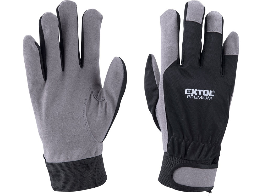 EXTOL PREMIUM kesztyű munkához; kombinált, szintetikus bőr tenyérrész,/ LUREX kézhát, méret: 11'