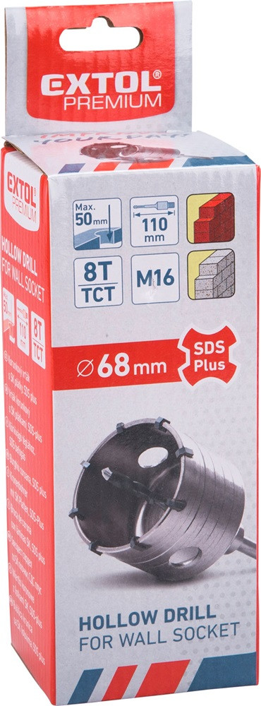 EXTOL PREMIUM körkivágó téglához, SDS Plus befogás; 68mm, M16×100mm hosszúságú szár