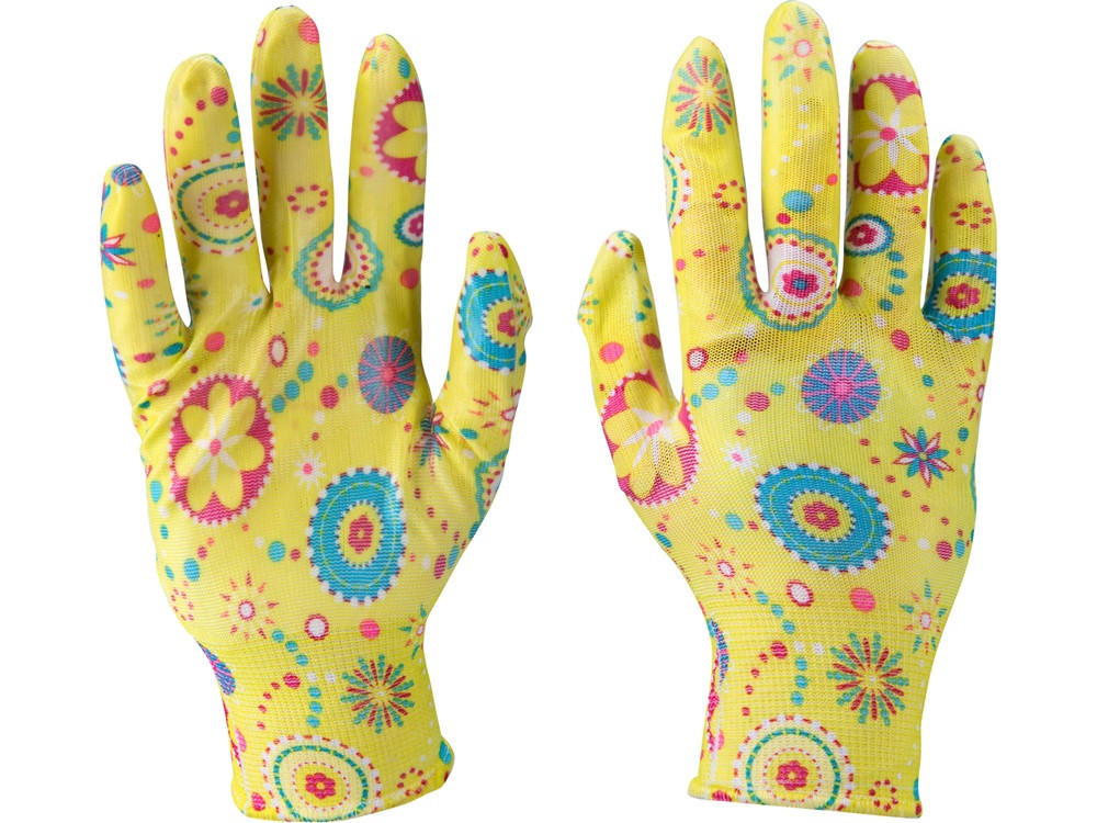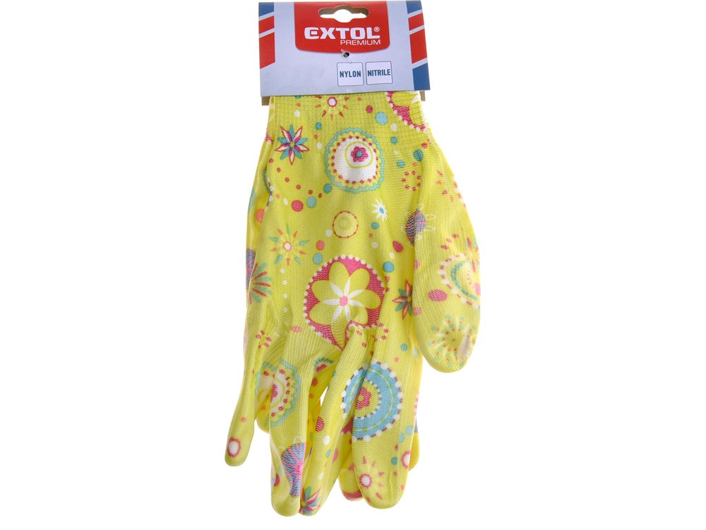 EXTOL PREMIUM kerti kesztyű, virágmintás, nylon, méret: 8' nitrilbe mártott teny. és ujjhegy., gumírozott mandzsetta