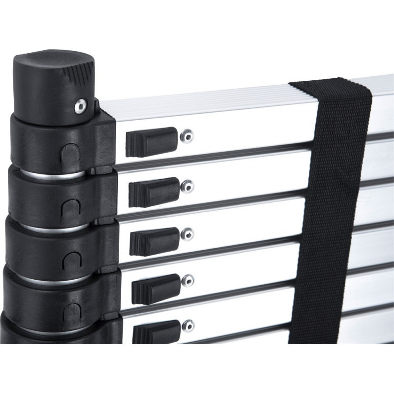 A teleszkópos létra teljesíti az európai biztonsági szabványok legújabb előírásait, engedélyezése az EN 131-6: 2019 szabvány rendelkezéseivel összhangban történt.Az egyes létrafokai a létrának biztonsági rögzítőelem segítségével rögzíthetők. A talajjal érintkező felületek speciális alakúak, a biztonságos használat érdekében. Nagyon kis méretűre lehet összecsukni ezt a teleszkópos létrát, ami rendkívül megkönnyíti a szállítását, kezelését és tárolását.