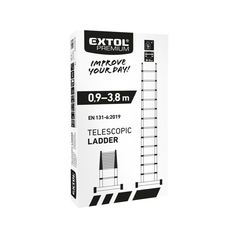 EXTOL PREMIUM teleszkópos létra, max./min magasság 3,8m/0,96m, ALU