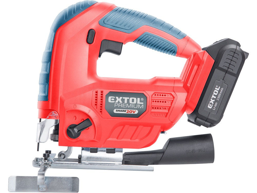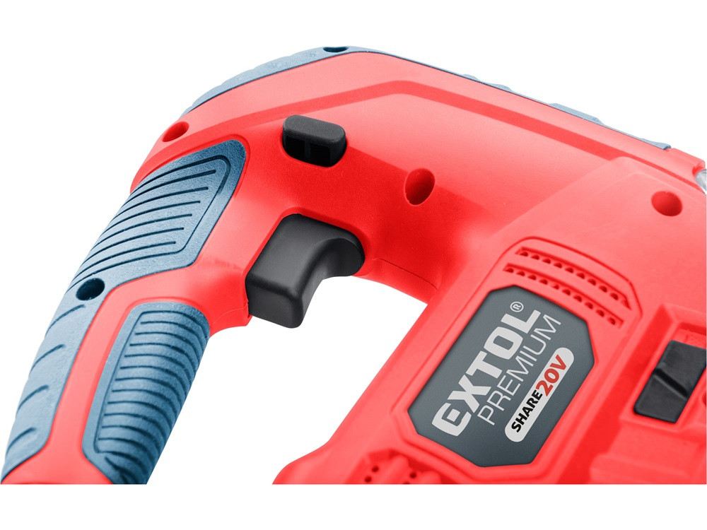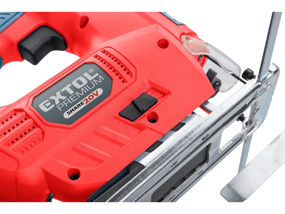 Az Extol® Premium SHARE 20 V dekopírfűrésszel, megfelelő fűrészlapok használatával, tömörfa léceket és deszkákat, faforgács és farost lemezeket, műanyagot, kemény gumit, kerámiát vagy fém lemezeket, továbbá elszívóhoz (műhelyporszívóhoz) csatlakoztatva gipszkarton, cement-faforgács stb. lemezeket lehet darabolni és fűrészelni, egyenes vagy ívelt vonalban. Az előtolás beállításával optimálisan lehet beállítani a fűrészelés sebességét. A „Bosch” rendszerű gyorsbefogónak köszönhetően, szerszám nélkül lehet a különböző gyártóktól származó „Bosch” típusú fűrészlapokat behelyezni és cserélni a készülékben. Az állítható előtolási fokozatok (0+3) biztosítják az anyagnak megfelelő optimális fűrészelést.