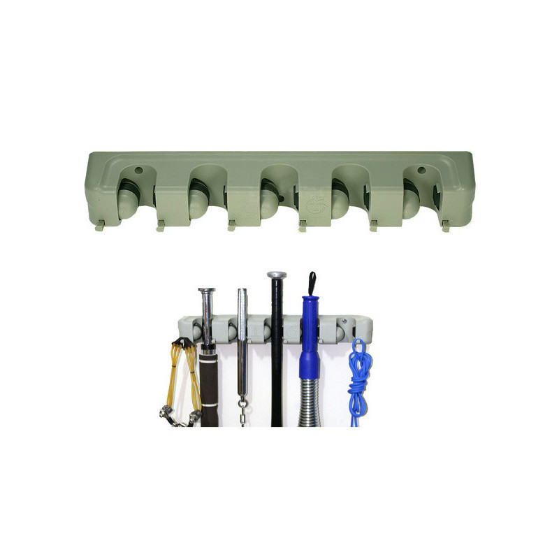 Ez a termék egy tökéletes megoldás minden olyan helyre, ahol rend és tisztaság szükséges. A praktikus szerszámtartó ideális lehet a kertészeti eszközök, ecsetek és felmosók tárolására a mosókonyhában, de remekül használható horgászbotok tárolására is. A tartó speciális foglalatokkal rendelkezik különböző botátmérők rögzítésére. A tartó továbbá 6 kis akasztót is tartalmaz, amelyekre ruhákat vagy más kisebb háztartási kiegészítőket lehet akasztani.