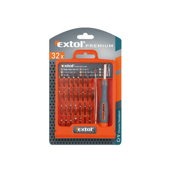 Egy darab Extol Premium Csavarhúzó készlet C.V. bitekkel.