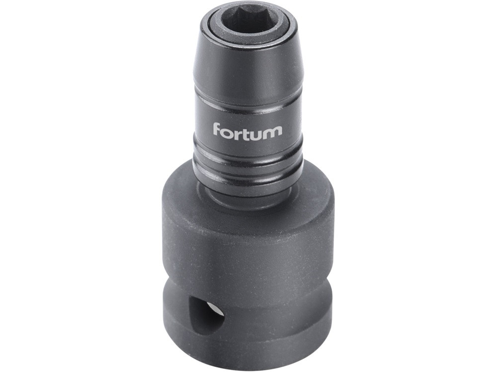 FORTUM adapter, impakt 1/4' BIT-ek gépi befogásához, 1/2' gépi befogás, gyorskioldóval, CrMoV, hossz: 49 mm