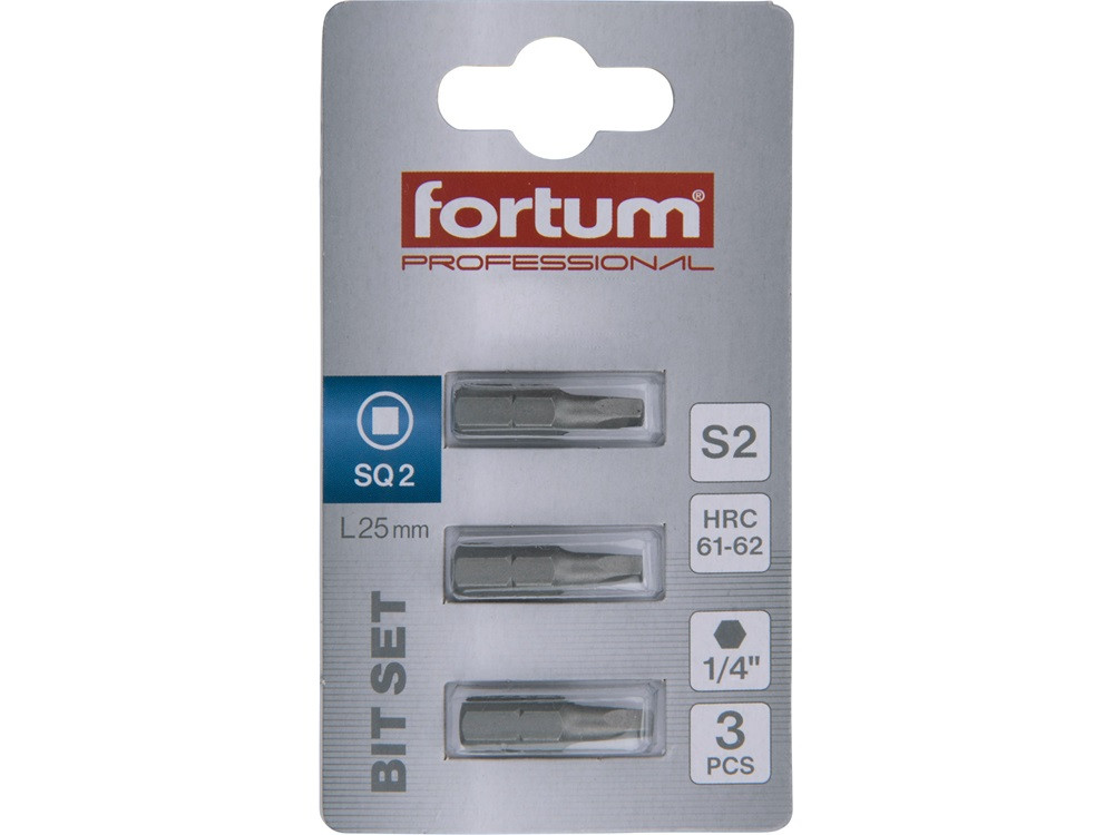 FORTUM behajtóhegy négyszög, 3 db, S2 acél; SQ 2×25mm, bliszteren