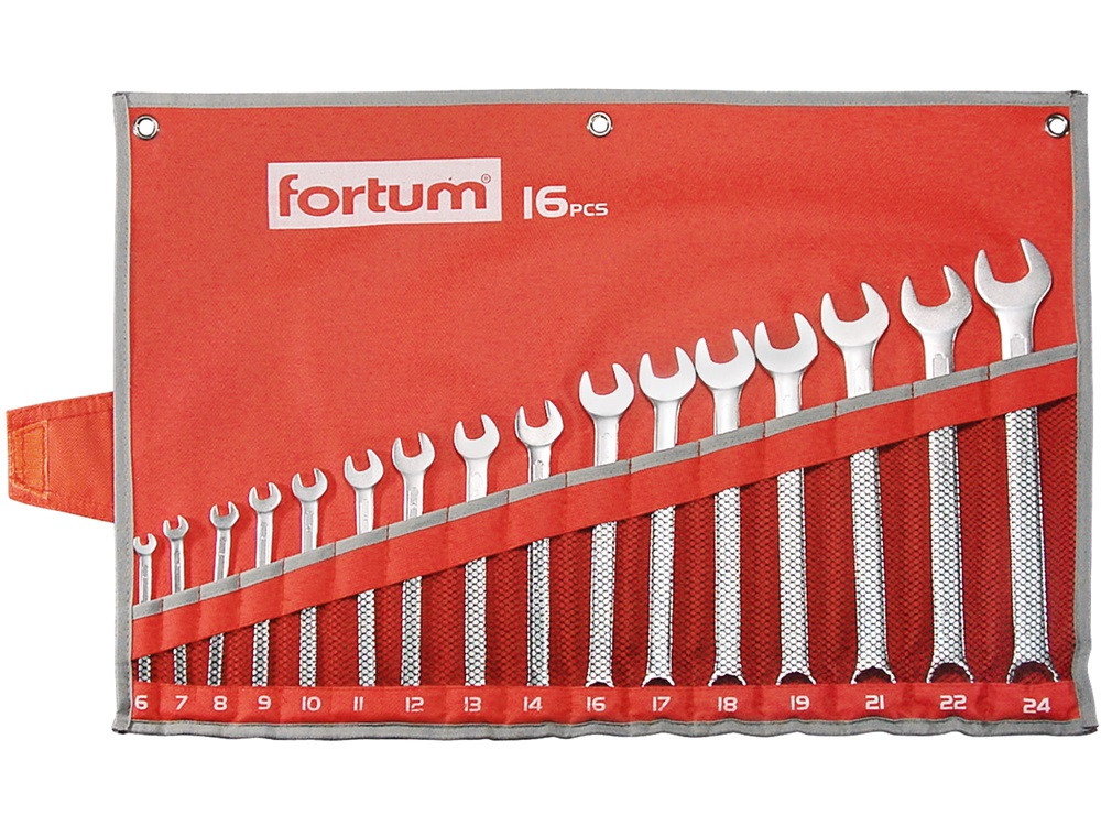 FORTUM csillag-villás kulcs klt. 16db, 6-24mm 61CrV5, mattkróm, vászon tok